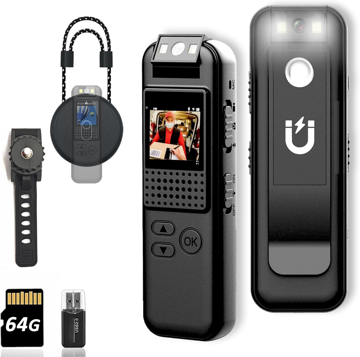 Find your new 【Upgraded】Mini Body Camera with Video  Audio Recording - 64G 1080p Mini Police Wearable Body Worn Cam - Portable Small Personal Camcorder Sport Bike Cycling Outdoor Video Recorder(Magnetic Lanyard) on this page.